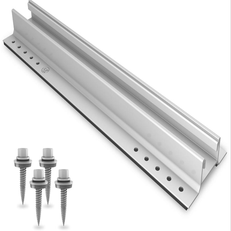 Minitrilho solar feito de liga de alumínio de alta resistência 6005-T5 (anodizado para anticorrosão) com conectores de aço inoxidável SUS304, funciona com telhas de aço coloridas / chapas galvanizadas para resistir à ferrugem e danos externos. Pesando apenas 1kg por metro, utiliza “fixação no ponto de pico” para distribuir as cargas uniformemente, evitando pressão extra em telhados metálicos.